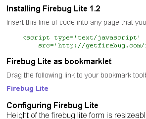 在上面的網址找到 “Firebug Lite as bookmarklet”